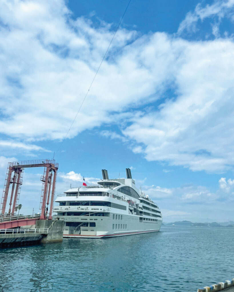 今治港にフランスの外国クルーズ船「ル・ソレアル」が初寄港し