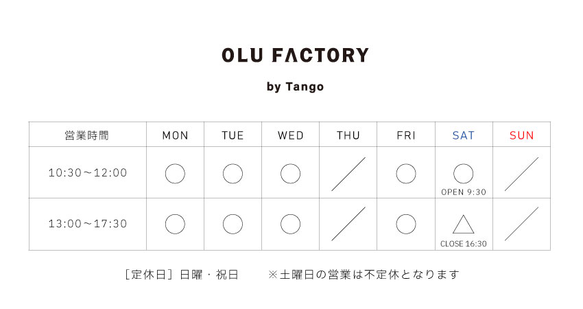 平素よりOLU FACTORY by Tangoをご愛顧いただき、誠にありがとうございます。