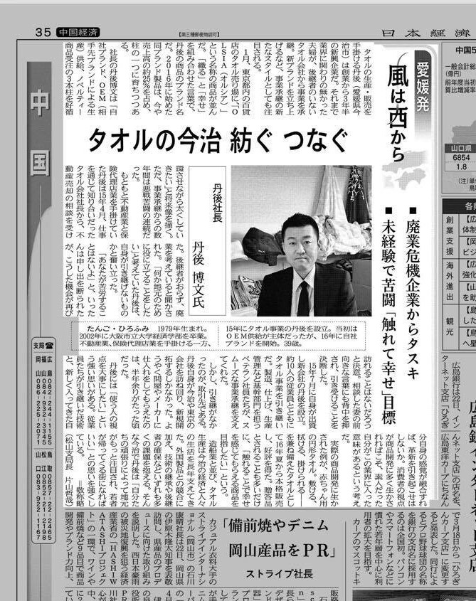 日経新聞に(株)丹後について掲載していただきました!